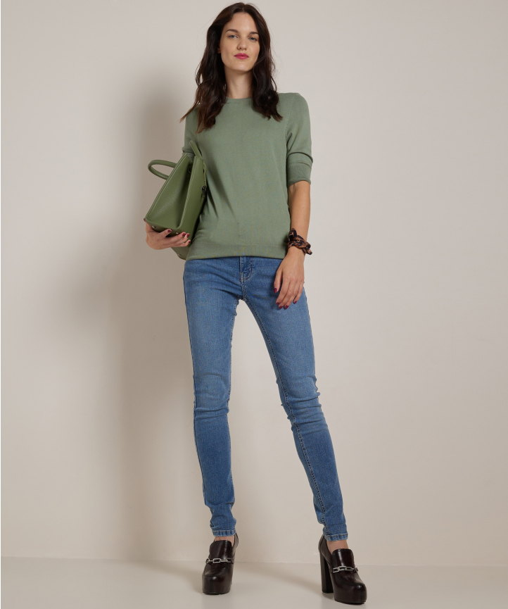 basic trui met halflange mouw