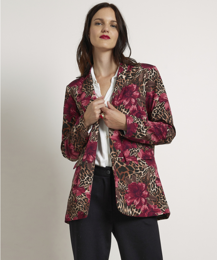 blazer met panterbloem print