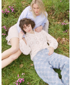 Blouse voor dames. De blouse is voorzien van een ronde hals met v-hals uitloop, knoopsluitingen aan de voorkant en driekwart mouwen. Verfraaid met een all-over broderie patroon in een uni off-white kleur. De blouse heeft een wijdere pasvorm en draagt comfortabel dankzij de soepele stof.