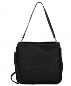 Tas voor dames van het merk Charm London. De tas is een schoudertas model en is voorzien van een afneembaar lang handhengsel, een afneembaar en verstelbaar schouderhengsel, een achtervakje met ritssluiting en een algemene ritssluiting. Van binnen voorzien van zijvakjes, waarvan één met ritssluiting. Verfraaid met een stoer design door de mix van suedinelook en teddystof boorden in een zwarte kleur. Afmeting (LxBxH): 27x13x27cm.