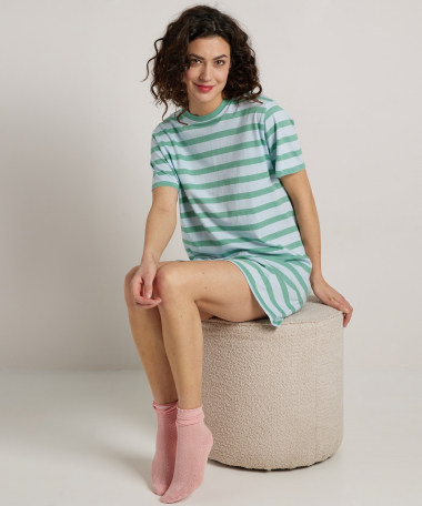 Het big shirt voor dames van terStal is een eigentijdse interpretatie van het nachthemd. Dit veelzijdige kledingstuk combineert comfort en stijl perfect. Met zijn ruime pasvorm biedt het big shirt dames de ultieme ontspanning tijdens de nacht. De subtiel aangebrachte knoopjes voegen een vleugje elegantie toe aan het ontwerp, waardoor het bigshirt ook geschikt is voor casual loungen in huis. Of het nu gaat om een ontspannen avondje op de bank of een rustige nacht, dit nachthemd biedt het comfort dat je nodig hebt. Dankzij de hoogwaardige materialen voelt het heerlijk zacht aan op de huid. Met het big shirt voor dames van terStal geniet je van een perfecte balans tussen klassiek en eigentijds design, waardoor het een onmisbaar item is in de garderobe van elke moderne vrouw.