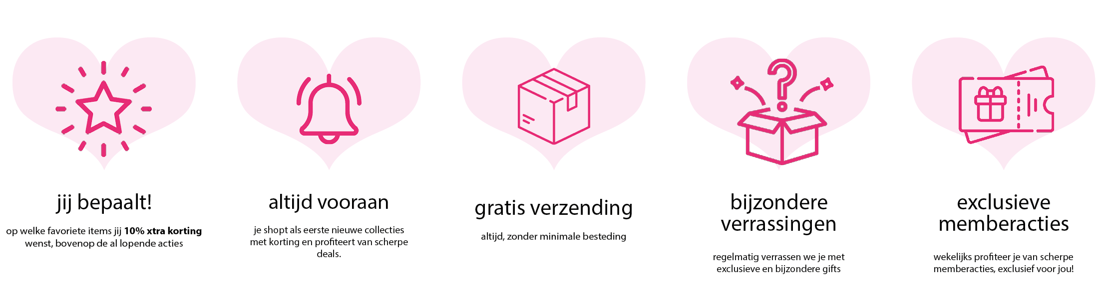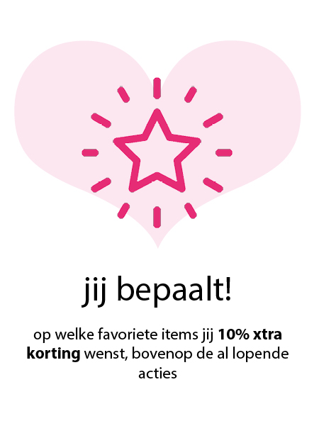 Met xtra-royaal ben je helemaal in control. Bepaal zelf op welke favoriete items je 10% xtra korting wilt - bovenop de al lopende acties! Je shopt als eerste met korting van nieuwe collecties en profiteert als eerste van scherpe deals. Jouw online aankopen worden altijd gratis verzonden, zonder minimale besteding. Daarnaast verrassen we je regelmatig met exclusieve en bijzondere gifts - gewoon, omdat we je waarderen