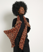 Sjaal voor dames. De sjaal is voorzien van een all-over cirkelprint in oranje tinten en verfraaid met kleine glitterdetails. Een prachtige modesjaal om je outfit mee te stijlen.