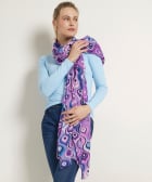 Sjaal voor dames. De sjaal is een modesjaal model en is voorzien van een rode retroprint. De sjaal heeft een afmeting van 85x180cm en draagt comfortabel dankzij de soepele stof.