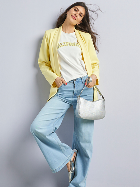 Wil je je blazer ook doordeweeks of in het weekend dragen? Combineer hem dan met een fijne jeans voor een relaxte, maar toch verzorgde look. Een lichtblauwe of zwarte dames jeans werkt altijd goed en vormt een mooie basis voor verschillende stijlen. Onder je blazer kun je alle kanten op. Een basic dames t-shirt met een print geeft je outfit een speelse touch, terwijl een effen shirt juist zorgt voor rust. Ook een luchtige blouse staat mooi onder een blazer als je het iets netter wilt houden. Qua kleuren kun je hier wat meer experimenteren. Combineer bijvoorbeeld een beige blazer met een witte top en een blauwe jeans voor een frisse uitstraling. Of ga voor contrast met een donkere blazer en een licht shirt. Maak je outfit af met sneakers of enkellaarsjes en je bent klaar voor een dagje shoppen, een lunchafspraak of een wandeling.